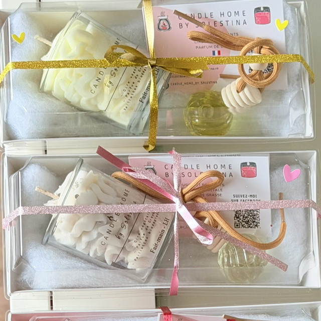 Coffret cadeau contient une bougie parfumée et une suspension de voiture